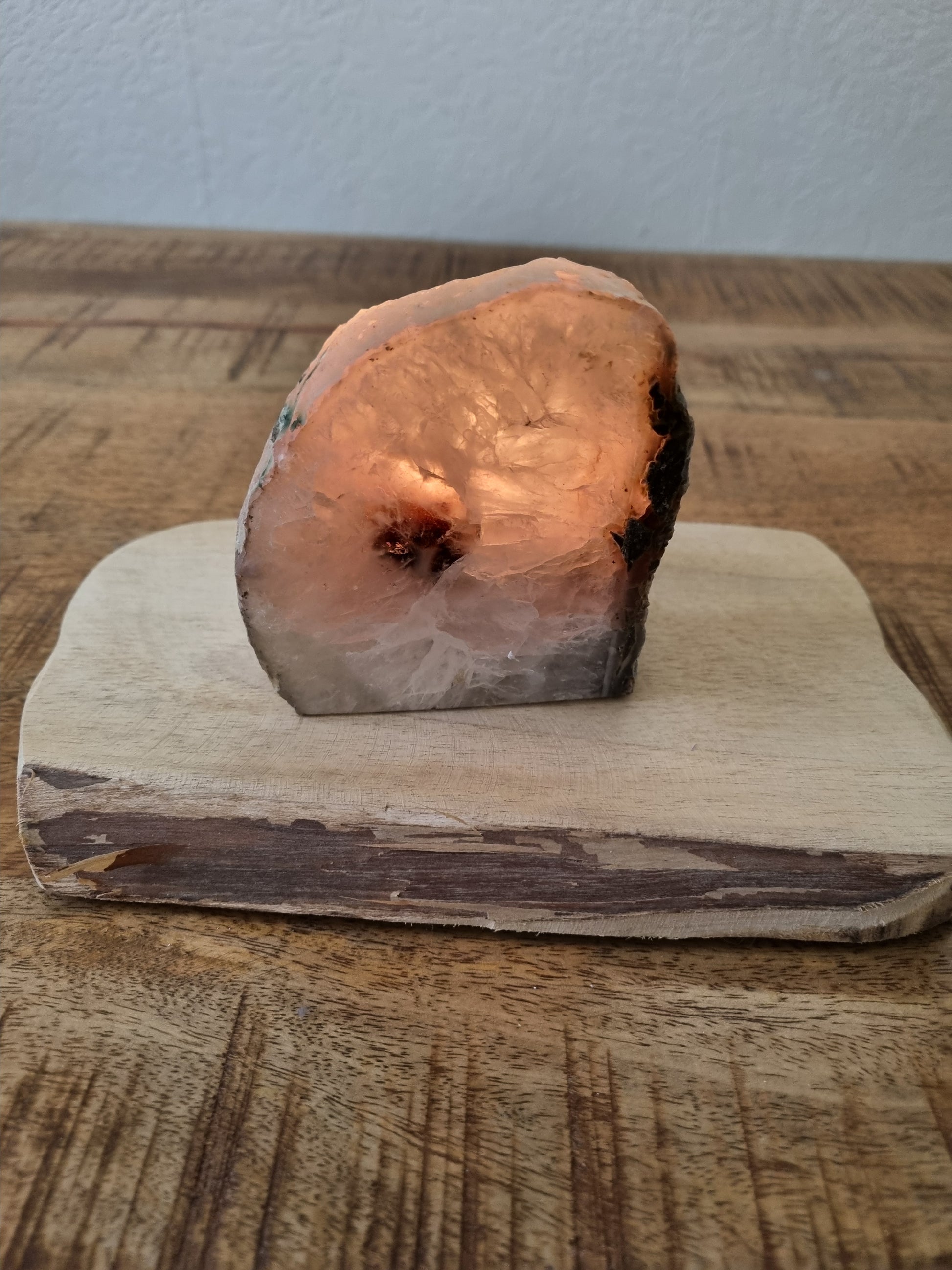 Wanneer je een waxinelichtje aansteekt, zorgt het doorzichtige agaat ervoor dat het licht op een sfeervolle manier verspreid wordt, wat bijdraagt aan een warme en gezellige sfeer. Deze waxinelichthouder is perfect voor gebruik in de woonkamer, slaapkamer of als een bijzonder cadeau.