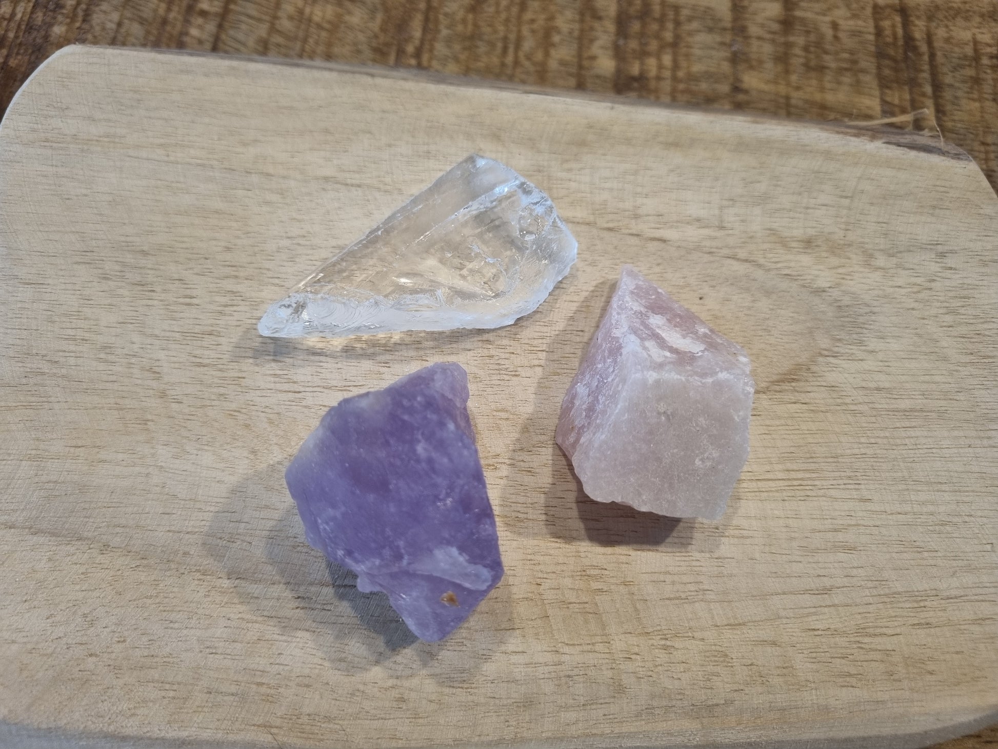 Ontdek de kracht van de Gouden Driehoek met onze prachtige ruwe edelstenen set! Deze magische combinatie van Amethist, Bergkristal en Rozenkwarts brengt harmonie, balans en positieve energie in elke ruimte.