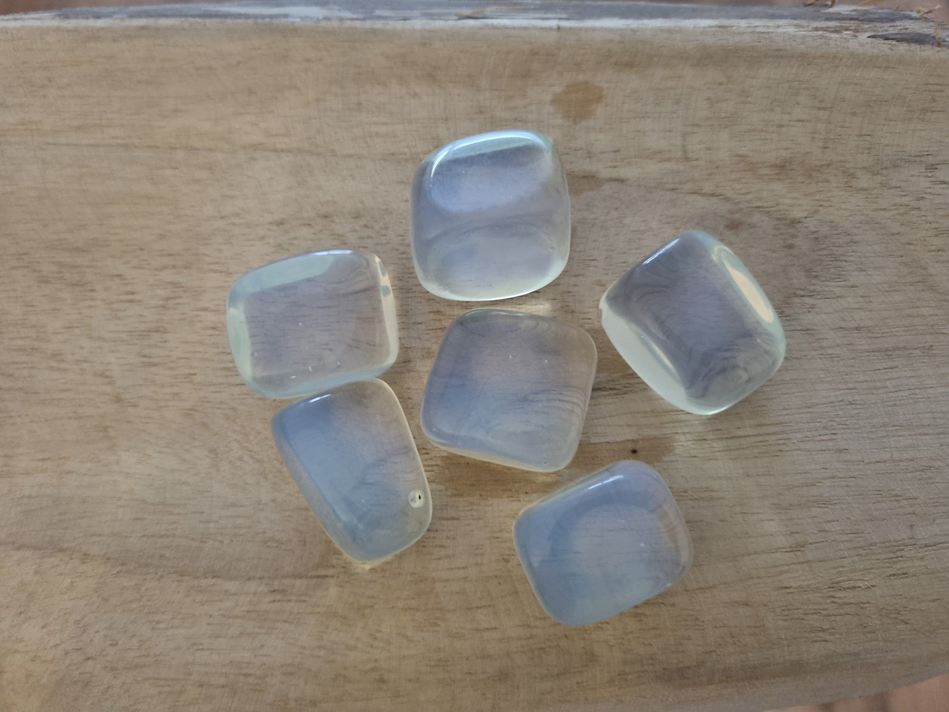 Deze opvallende steen, met zijn melkachtige gloed en zachte regenboogachtige reflecties, trekt direct de aandacht. Hoewel opaliet een door de mens gemaakte steen is, staat hij bekend om zijn kalmerende en harmoniserende eigenschappen.